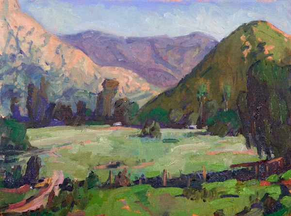 Most images are smaller paintings done "en plein air," or on location. Larger paintings are either plein air and/or studio.
